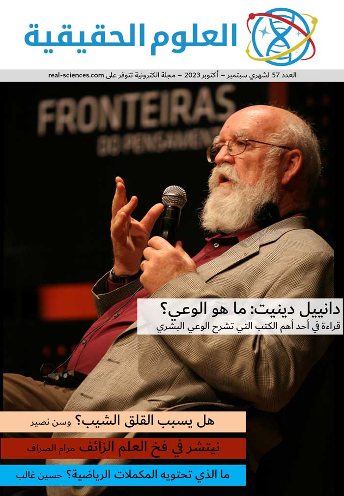 العدد 57 من مجلة العلوم الحقيقية تجدون فيه قراءتين في كتابين الاول حاسة الرقم لستانيسلاس ديهين والثاني هو شرح الوعي لدانييل دينيت (على الغلاف) احد اهم الكتب في التاريخ حول الوعي البشري. تقرؤون في العدد ايضا من ترجمة حسين غالب ما الذي تحتويه المكملات الغذائية؟ ومن ترجمة وسن نصير ما صحة كل من هذه: خطورة التبول بعد الجنس، القلق والشيب، تعقيم القولون؟ كما تقرؤون عن مقاييس الذكورية والانوثة في علم النفس. مرام الصراف تترجم حول وقوع نيتشر في العلم الزائف (مرة أخرى!) كما تقرؤون عن المجموعة الفردانية I – الاوروبيون الاوائل.