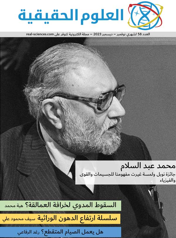 العدد 58 من مجلة العلوم الحقيقية، تقرؤون فيه عن خرافة العمالقة وهل كان البشر عمالقة يوماً؟ هل تشعر الحيوانات بالذنب؟ كما تقرؤون الحلقة الاولى من سلسلة ارتفاع الدهون الوراثي من اعداد سيف محمود علي عن حالة ارتفاع القطيرات الدهنية العائلي. ندخل في هذا العدد بالعالم السري لكارل يونغ وطائفته وخرافاته. كتبنا في هذا العدد ايضاً عن كيفية قياس الطاقة في جسم الانسان. هل يعمل الصيام المتقطع؟ تقرؤون الاجابة ايضاً هنا. على الغلاف محمد عبد السلام الحائز على جائزة نوبل في الفيزياء عام 1979. حول سلاسل الحمض النووي نكتب عن المجموعة J وتاريخها والقصص المرتبطة بها. ينشر خالد بنشانع مقالا بعنوان “بنية المادة في فيزياء الكم ومآلاتها الإبستمولوجية” يمثل ملحق هذا العدد وفيه تقرؤون كيف ساهمت نظرية الكم في احداث تغييرات بمفاهيمنا المعرفية والفلسفية عن الفيزياء.