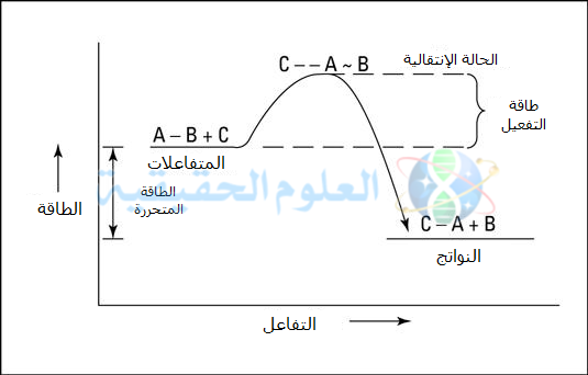 وهنا نعود مرة أخرى لنظرية الإصطدام (collision theory) وكما ذكرنا تفترض هذه النظرية ان الطاقة الناتجة من التصادمات بين الجزيئات المتفاعلة ينتج عنها طاقة كافية لتحويل المتفاعلات إلى حالة الانتقال (transition state) ثم بعد ذلك تكون النواتج (products).